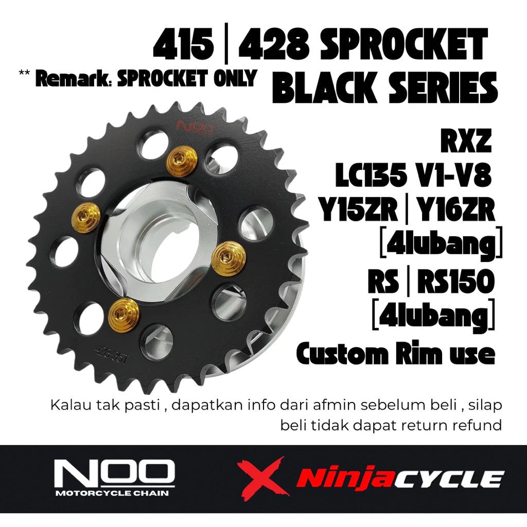 4lubang Noo sprocket 415 black lc135 rxz y15 y16 custom rim -By Sea Courier Method 🚢📦