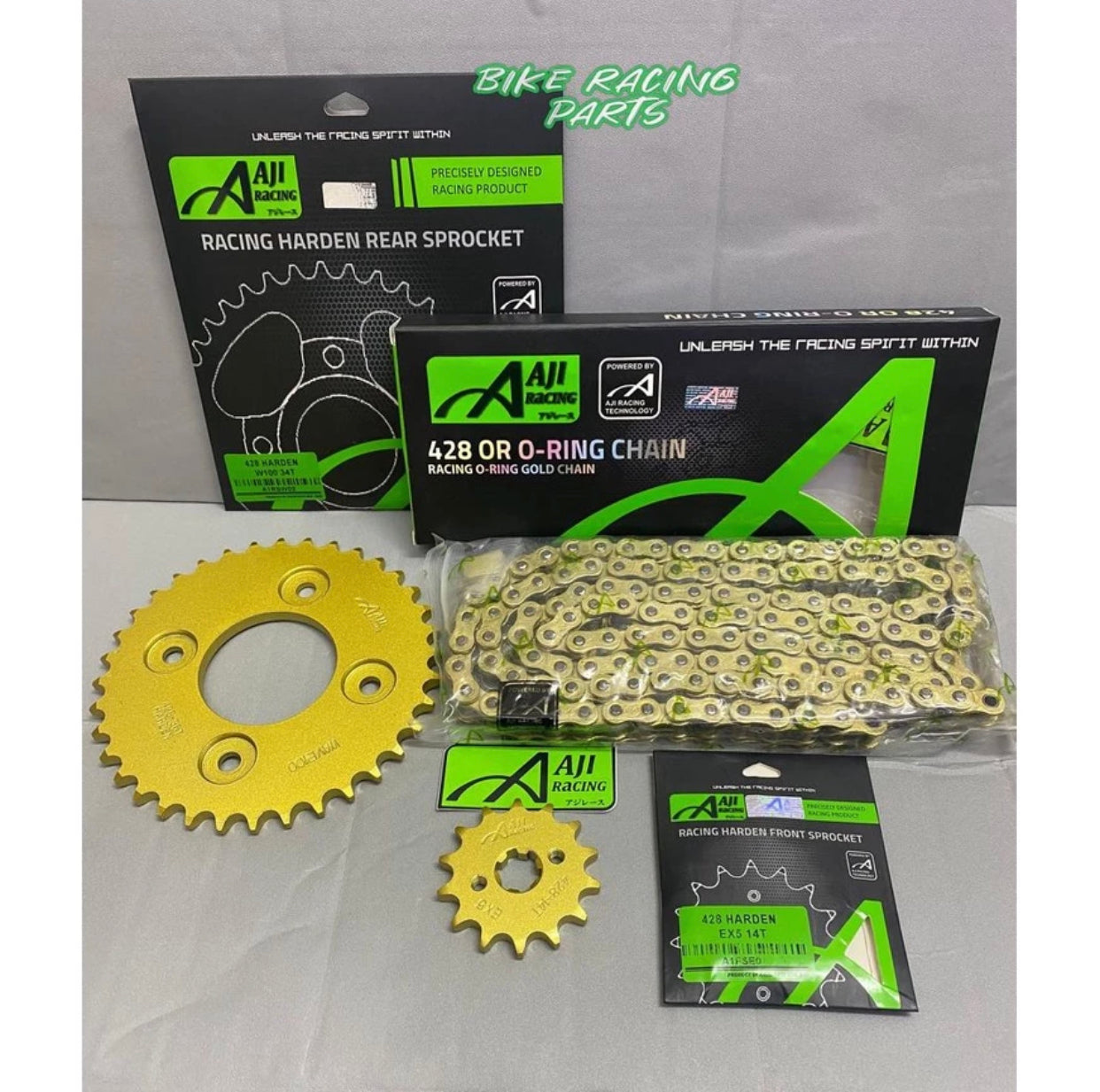 AJI Racing [ 428H ] WAVE100/ WAVE110/ WAVE125/WAVE125 i SPROCKET + 132L CHAIN RANTAI VALUE SET🔥 [ O-RING / NORMAL ] -By Sea Courier Method 🚢📦