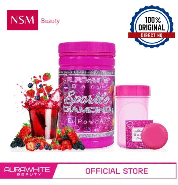AURAWHITE BEAUTY COLLAGEN SPARKLE DIAMOND EX POWDER 1000GRAM + FREE SHAKER + FREE WHITENING BODY SOAP / AURA WHITE PUTIH CERAH GEBU [100% ORIGINAL HQ]