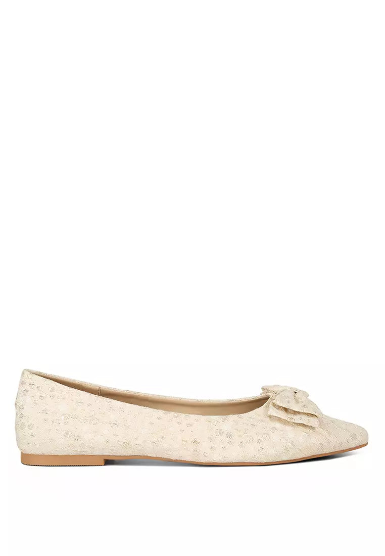 Upper Material: Jacquard Outer sole: TPR Closed Almond Toe Bow Embellishment Flat Heels Lightly Cushioned Insoles