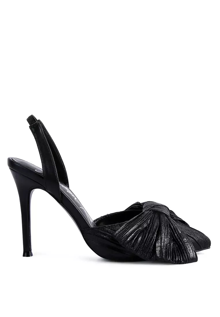 Black High Heeled Bow Slingback Sandals