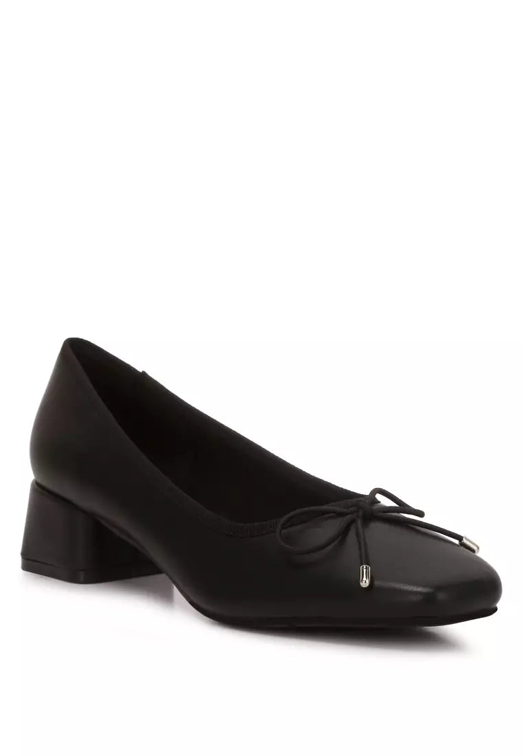Type: Ballerinas Upper Material: Recycled Faux Leather Light Cushion Insoles Outer Sole: Rubber Closed Square Toe Bow Embellishment Low Block Heel