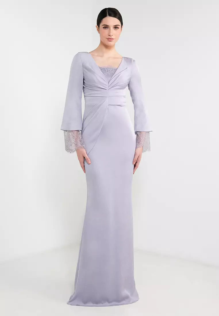 "Celia" offers an enchanting blend of sophistication and grace, ideal for gala events and sophisticated gatherings. This floor-length dress showcases a subtle yet stunning lavender shade, matched with a carefully structured design to accentuate a sleek silhouette.