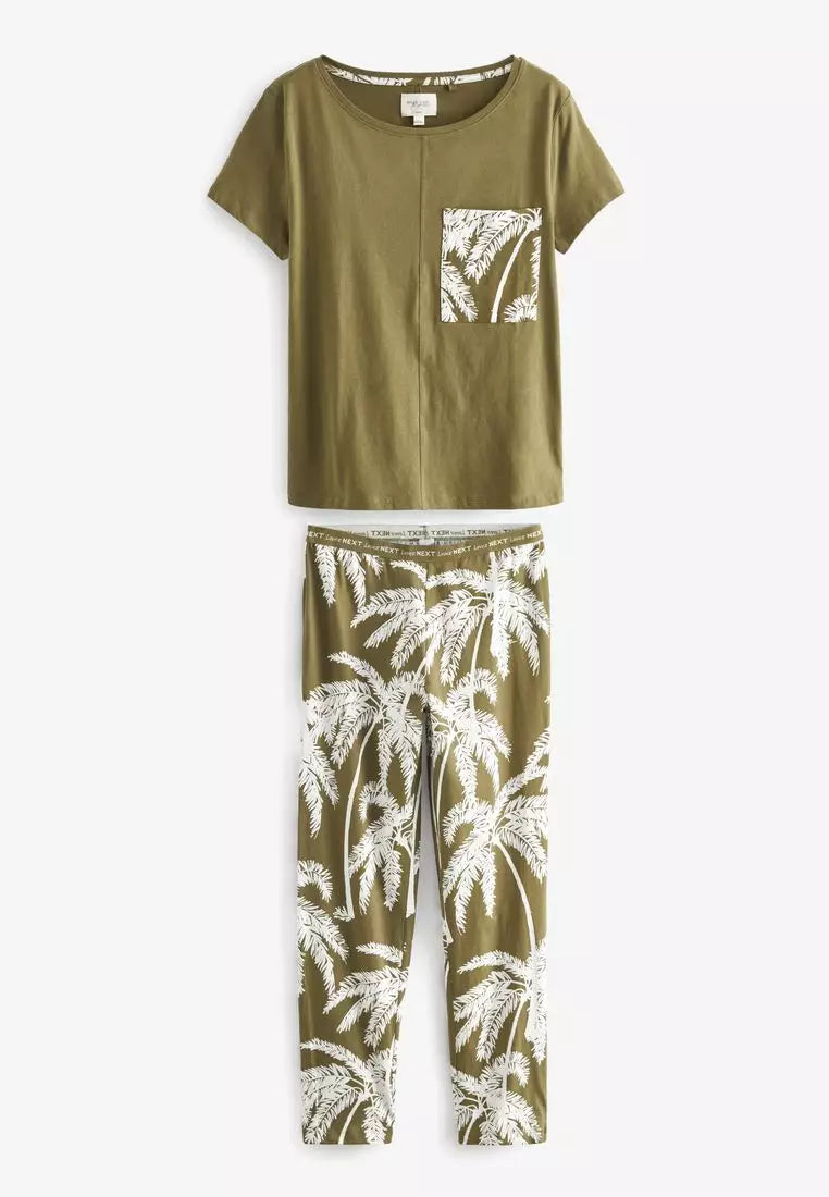 With its olive green hue paired with a playful white fern print, this pyjama set strikes a balance between simplicity and style. Ideal for those who appreciate comfort without compromising on appearance, these pyjamas will become your go-to for a peaceful slumber or lounging at home.