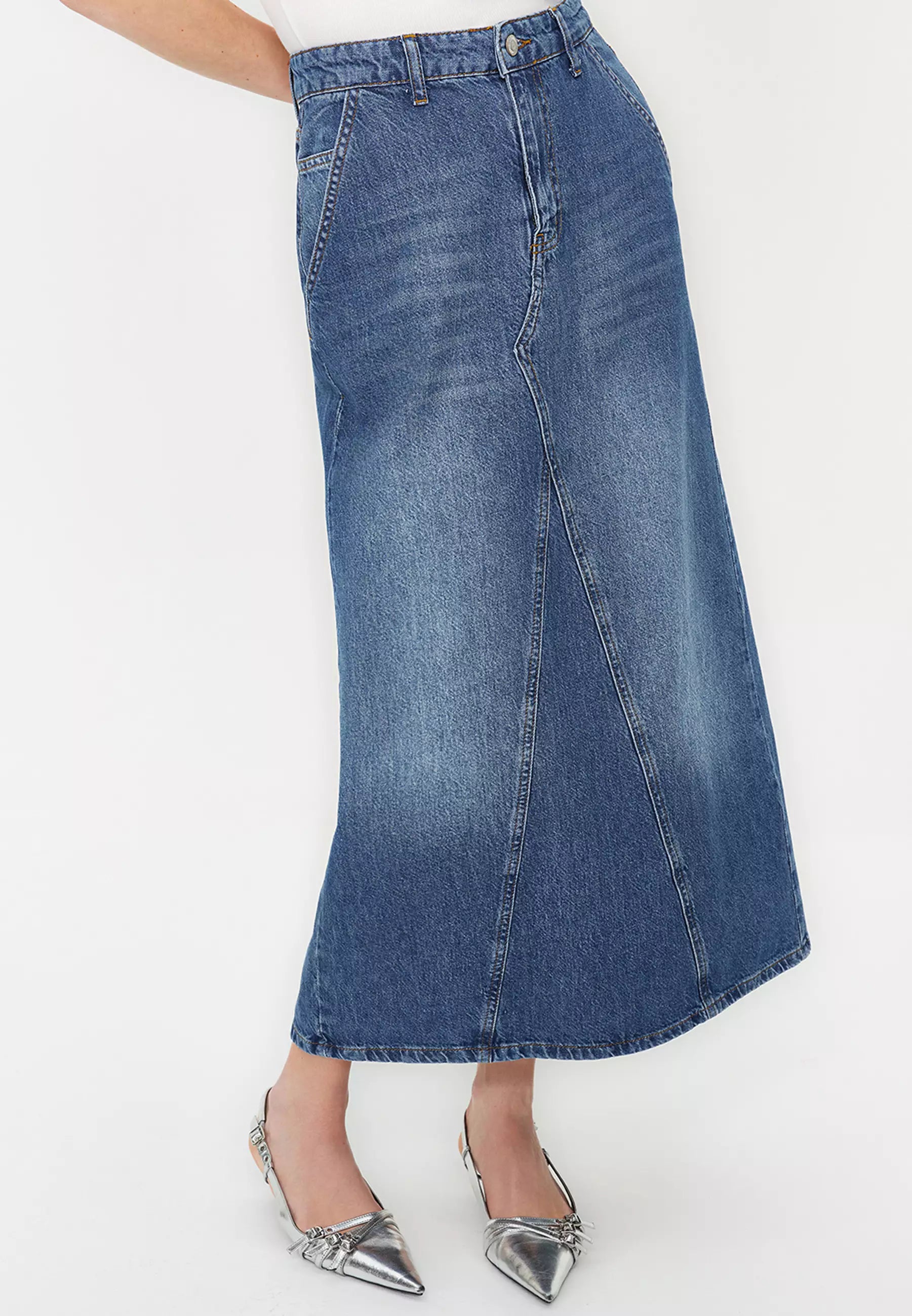- Wash hue denim midi skirt- High rise- Regular fit- Front zip with button fastening- 2 back...