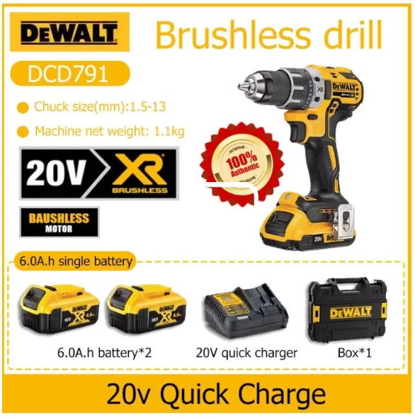 DeWalt DCD791 screwdriver brushless cordless electric drill 20V lithium battery screwdriver screwdriver household multi-function power tool -By Sea Courier Method 🚢🎁