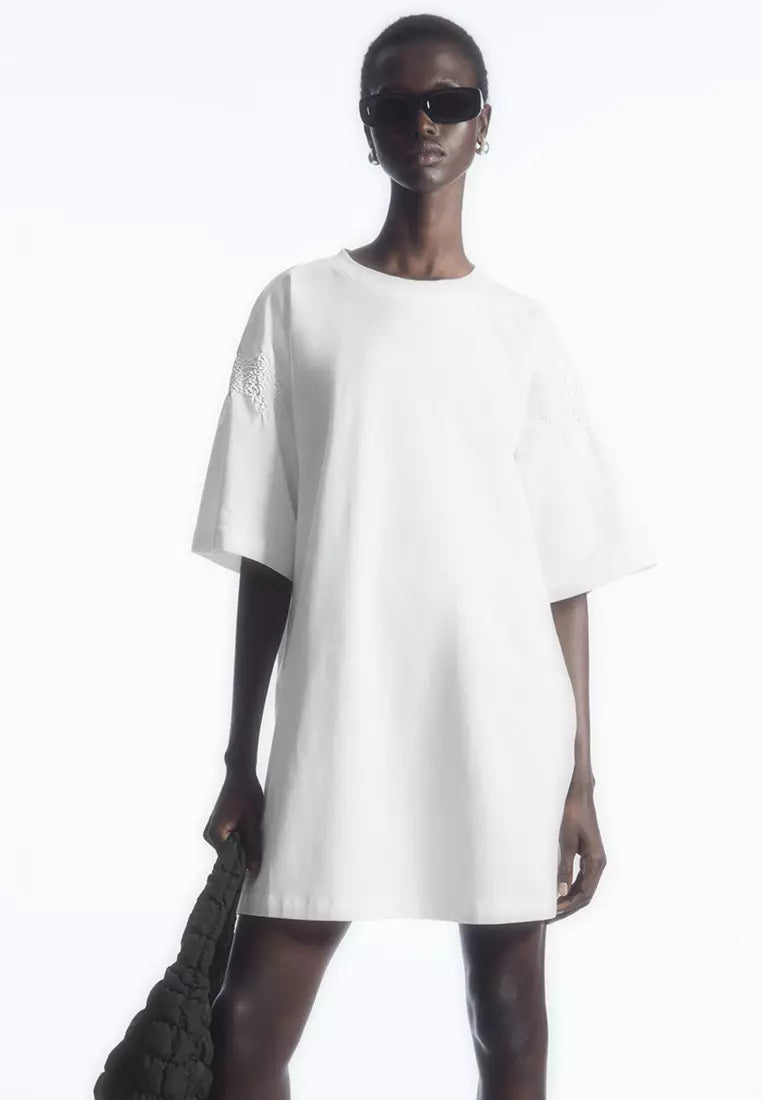 Embroidered Ruffle-Sleeve T-Shirt Dress