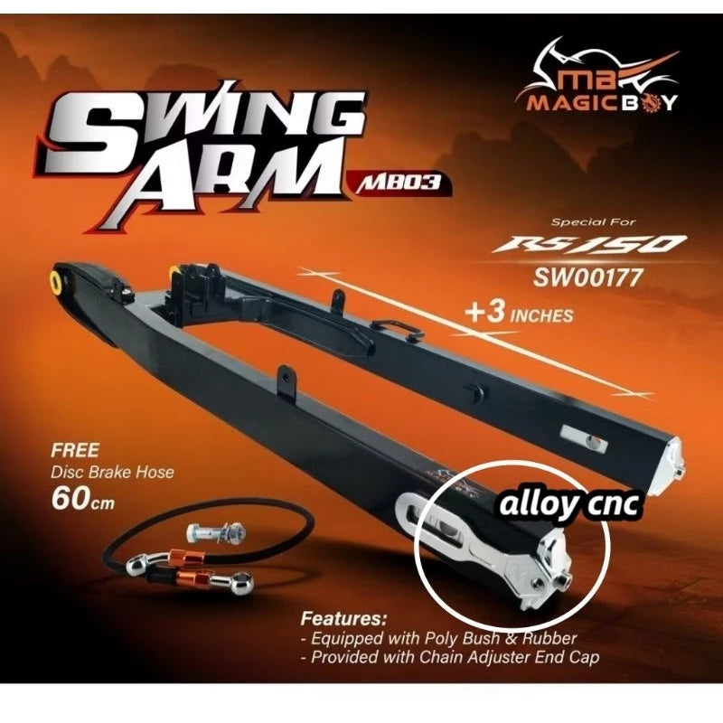 (FREE BRAKE HOSE) magicboy swing arm mb03 +3inch +2inch RS150 RSX150 with cnc chain adjuster -By Sea Courier Method 🚢📦