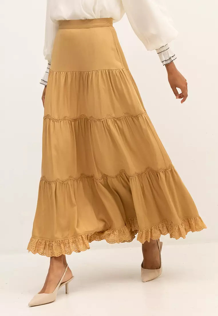 Elevate your wardrobe with the FSC Rayon Tiered Frill Skirt, a piece that exudes a blend of rustic charm and contemporary fashion.