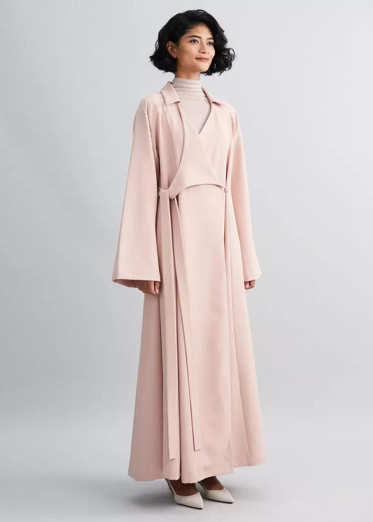 Comfort meets style in our ‘Hanifah’ abaya. The key defining detail of this abaya are the asymmetrical lapels that double as a ribbon that can be cinched at the middle or theside of the garment to highlight the feminine hourglass figure before falling down to a full skirt. Comes in a variety of colour to suit your taste, we suggest to pair it with your favourite Arumn scarf and pointy toed sandals.