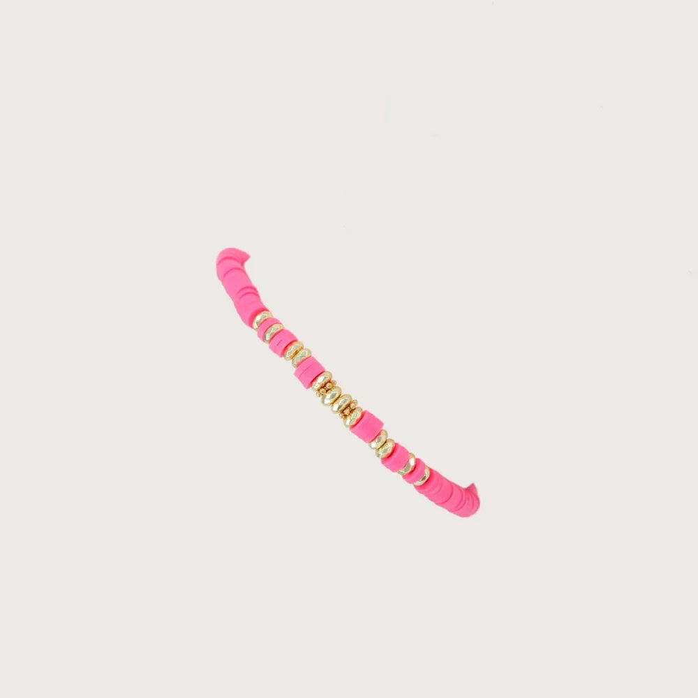 🌞 What it is - Elevate your summer style with these trendy heishi bracelets made of polymer clay beads in gold color with spaced beads. Perfect for stacking and creating a unique look every time.