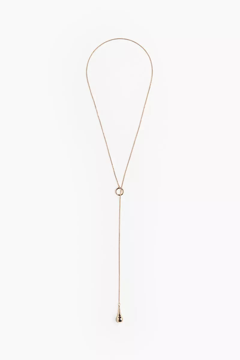 The necklace’s adjustable length allows for a customizable fit, perfect for tailoring to different necklines or styles. Whether paired with a crisp blouse for the office or a chic dress for an evening out, this lariat necklace is sure to draw attention with its subtle shine and unique silhouette.