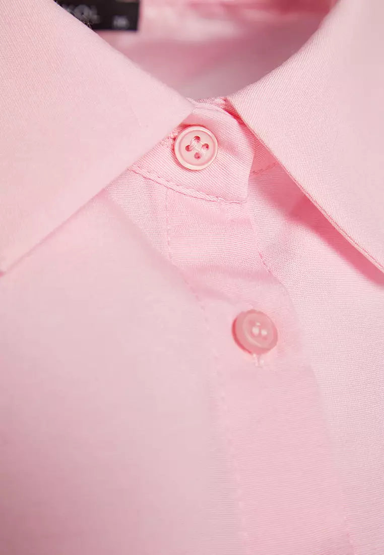 The shirt's soft pink hue offers a gentle touch of color to your ensemble, making it an ideal choice for both office attire and weekend brunches. Featuring a neat button-up front and a classic collar, the design balances traditional elements with modern femininity. The addition of a smart chest pocket adds practicality to the stylish piece.