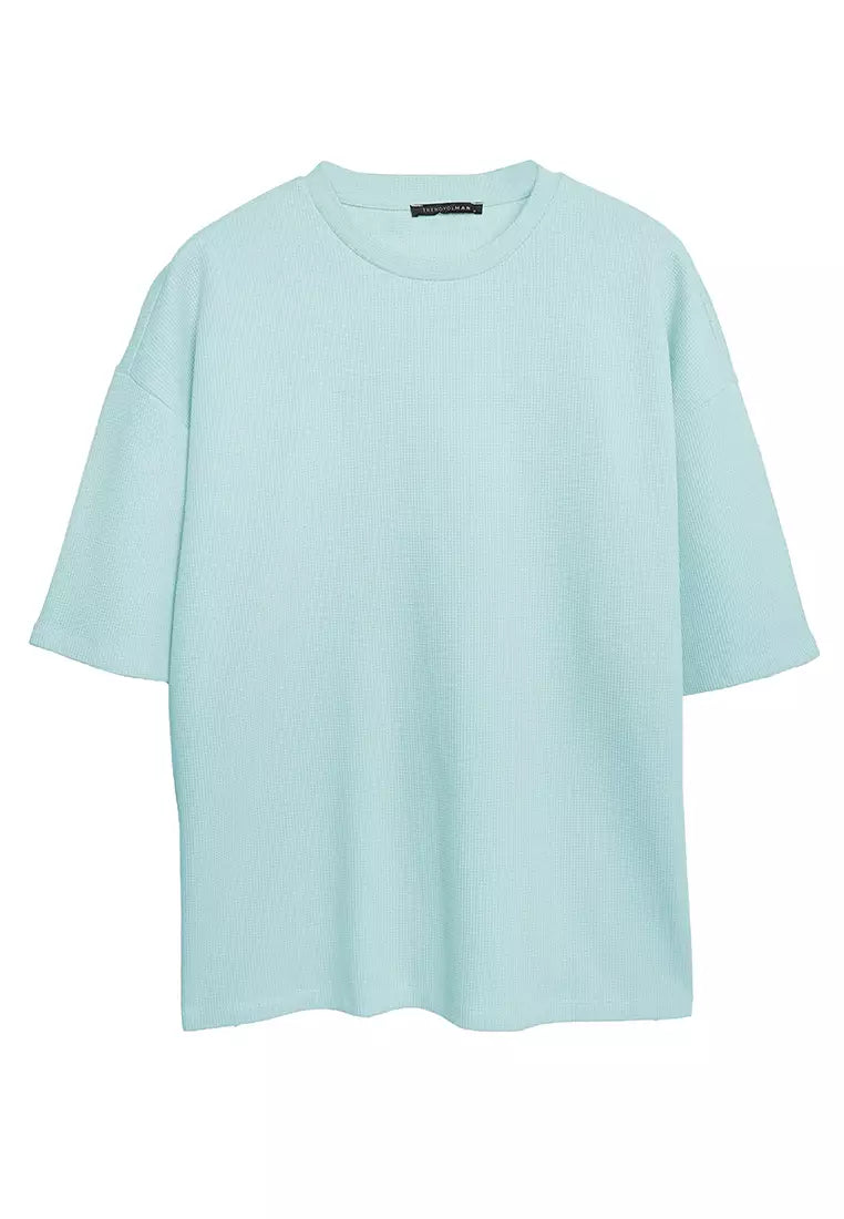 Mint Men's Basic Oversize/Wide Cut Crew Neck Short Sleeves Textured T-shirt