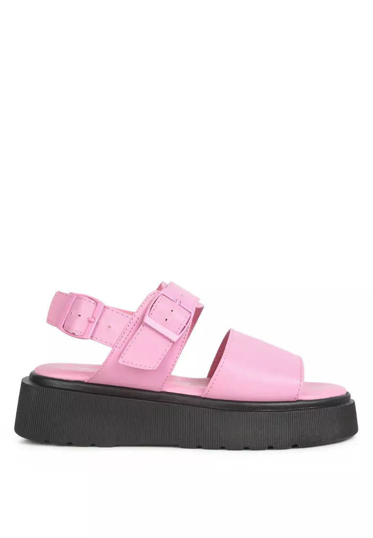 Heel Type: Platform Heel Round Open Toe Upper Material: BOX PU Outsole: TPR Pin Buckle Detail Casual Sandals