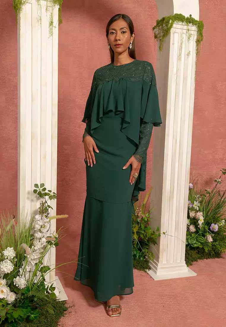 Embrace a touch of elegance with the Recycled Chiffon Flare Kurung Modern set, designed for the discerning woman who values both tradition and the environment. This set stands as a beacon of sustainable fashion, crafted from recycled polyester chiffon, and represents a commitment to eco-conscious lifestyle choices.