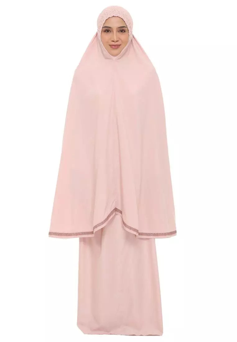 Presented in the serene Rose Smoke shade, it is a color that resonates with calmness and femininity, adding a subtle charm to your worship attire. This telekung is an embodiment of tranquility, designed to accompany you through moments of reflection and devotion.