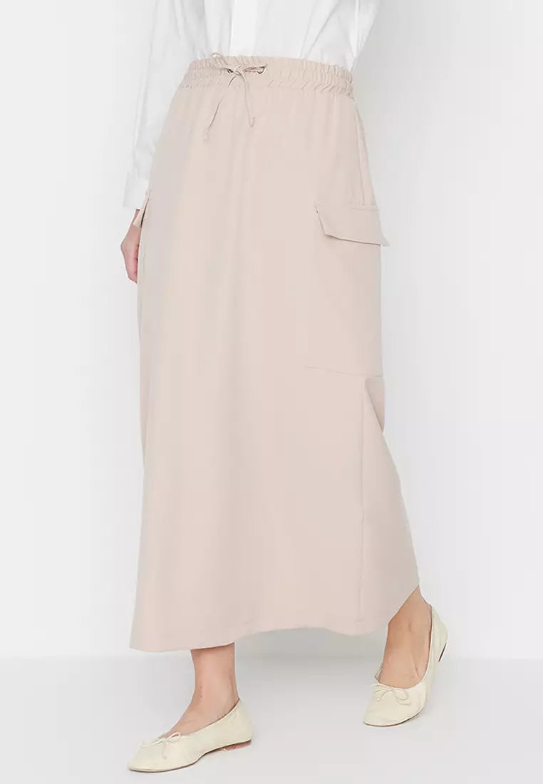 Step up your style game with this versatile long skirt. Crafted from quality polyblend fabric, it's perfect for everyday wear. Allows you to move freely, flattering your figure with a high rise cut. Featuring an exterior drawstring, adjust it for a perfect fit. Add this to your cart today!