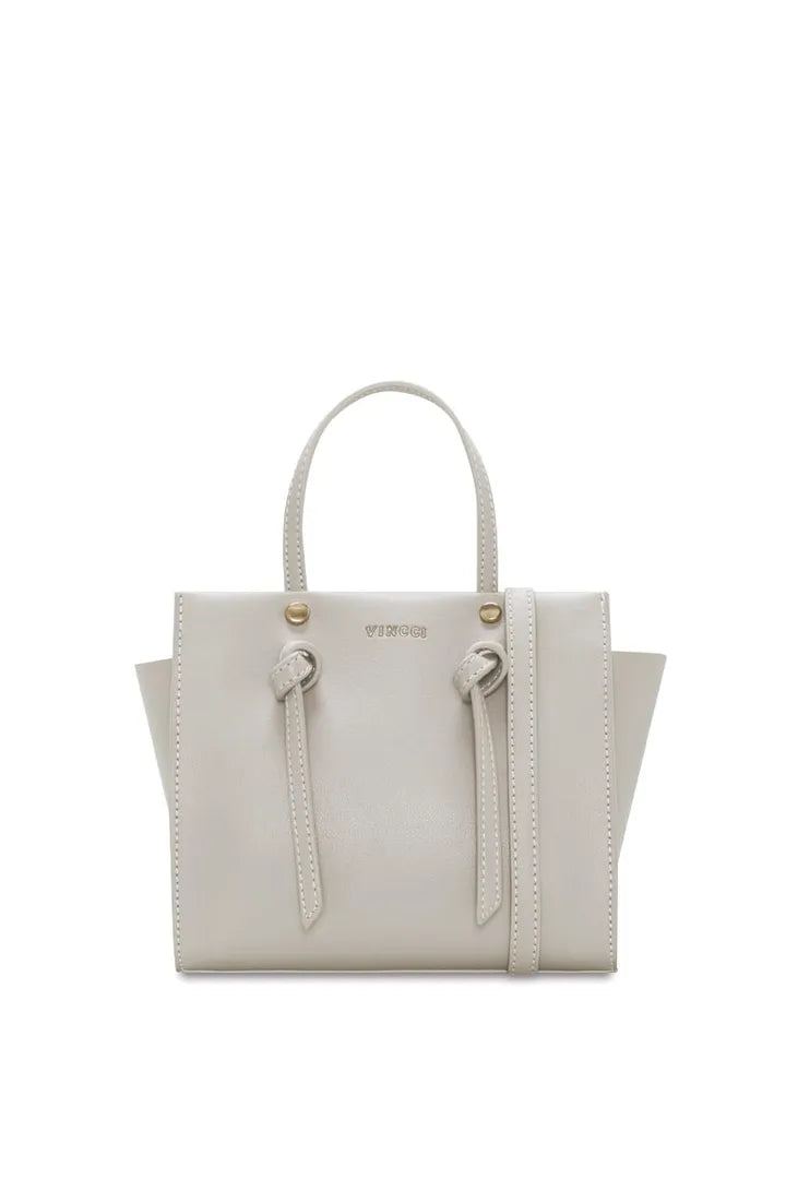 The ladies casual satchel is a sleek and stylish accessory featuring a clean and minimalist design and minimalist knot detailing. The bag has two sturdy handles and a long shoulder strap for easy carrying and a spacious interior to hold all your essentials. It exudes sophistication and elegance, making it a versatile choice for various occasions in a taupe color.