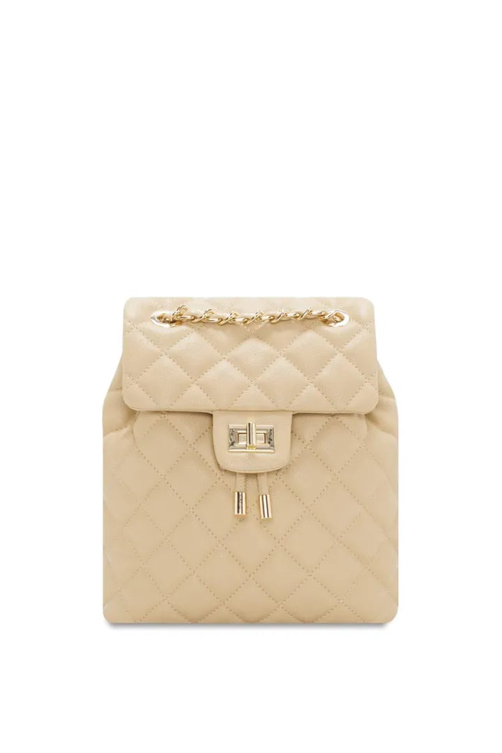 Experience practical style with our quilted shoulder backpack. Featuring a front flap secured by a metallic twist lock closure, it offers secure storage. The adjustable twin shoulder straps ensures comfortable wear. Inside, a spacious internal compartment provides ample room for your belongings. Crafted convenience, this backpack is perfect for everyday use.