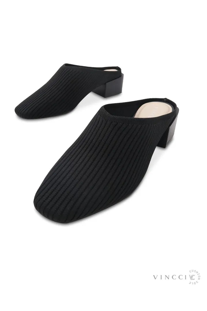 Round toe casual comfort pump, Yarn knit pattern strap detailing, Elastic shoe cuff, Cushioned footbed gives lasting comfort, Black color.