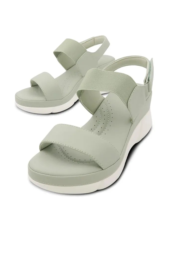 Casual comfort platform, Elastic multi strap design, Slingback strap with velcro fastening, Wedge sole, Grey color.
