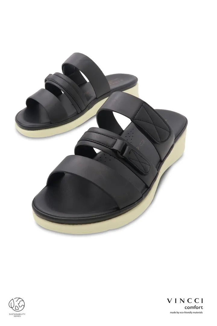 ECO collection casual comfort sandal, Multi strap design with velcro fastening, Cushioned footbed give lasting comfort, Polyurethane insole and outsole, Black color.