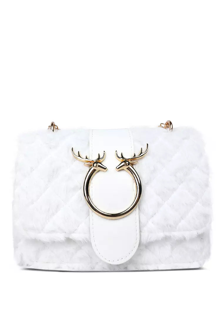 This faux fur sling bag with fancy buckle details on top and a long chain will always be your go-to bag. Complement it with crop tops, high-waisted pants, mini skirts, summer dresses, or even clubwear to tuner up your look.