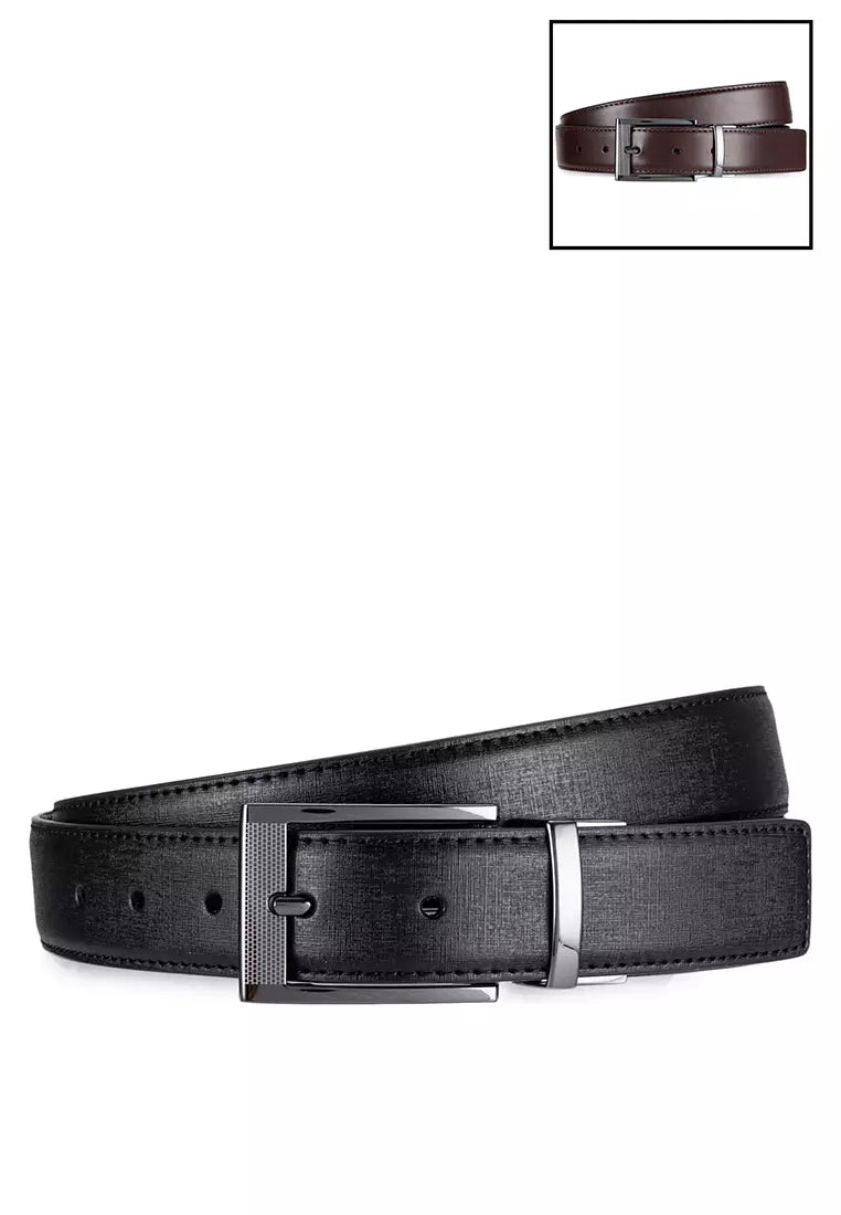 Accentuate your ensemble with the Willson Reversible Leather Belt, a versatile addition to your accessory collection. This finely crafted belt features a rich, textured leather finish on one side and a smooth, polished leather on the other, offering you two stylish options in one. The sleek, silver-tone buckle provides a sharp contrast, adding a touch of modern sophistication to both casual and formal outfits. With its easy reversible mechanism, you can switch between looks with a simple twist. Whether you're aiming for a classic or contemporary aesthetic, the Willson Belt is designed to complement a variety of trouser styles and colors, making it an indispensable piece for every wardrobe.